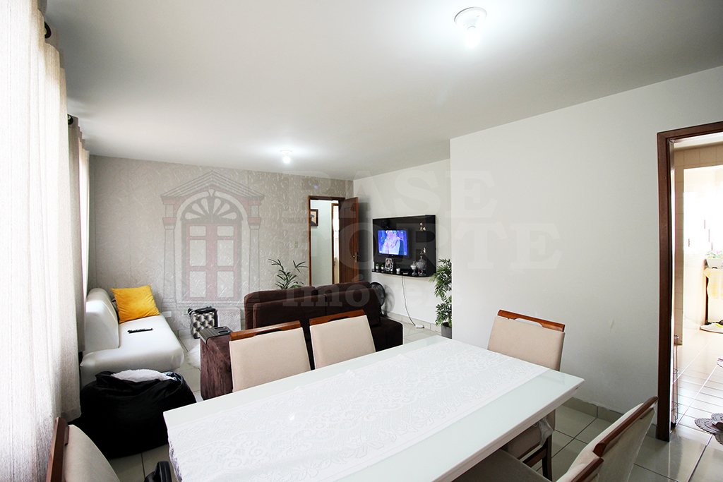 Apartamento contendo 3 quartos (sendo 1 suíte), sala de estar e jantar conjugadas, cozinha com armários, banheiro social, lavanderia e 1 vaga de garagem.