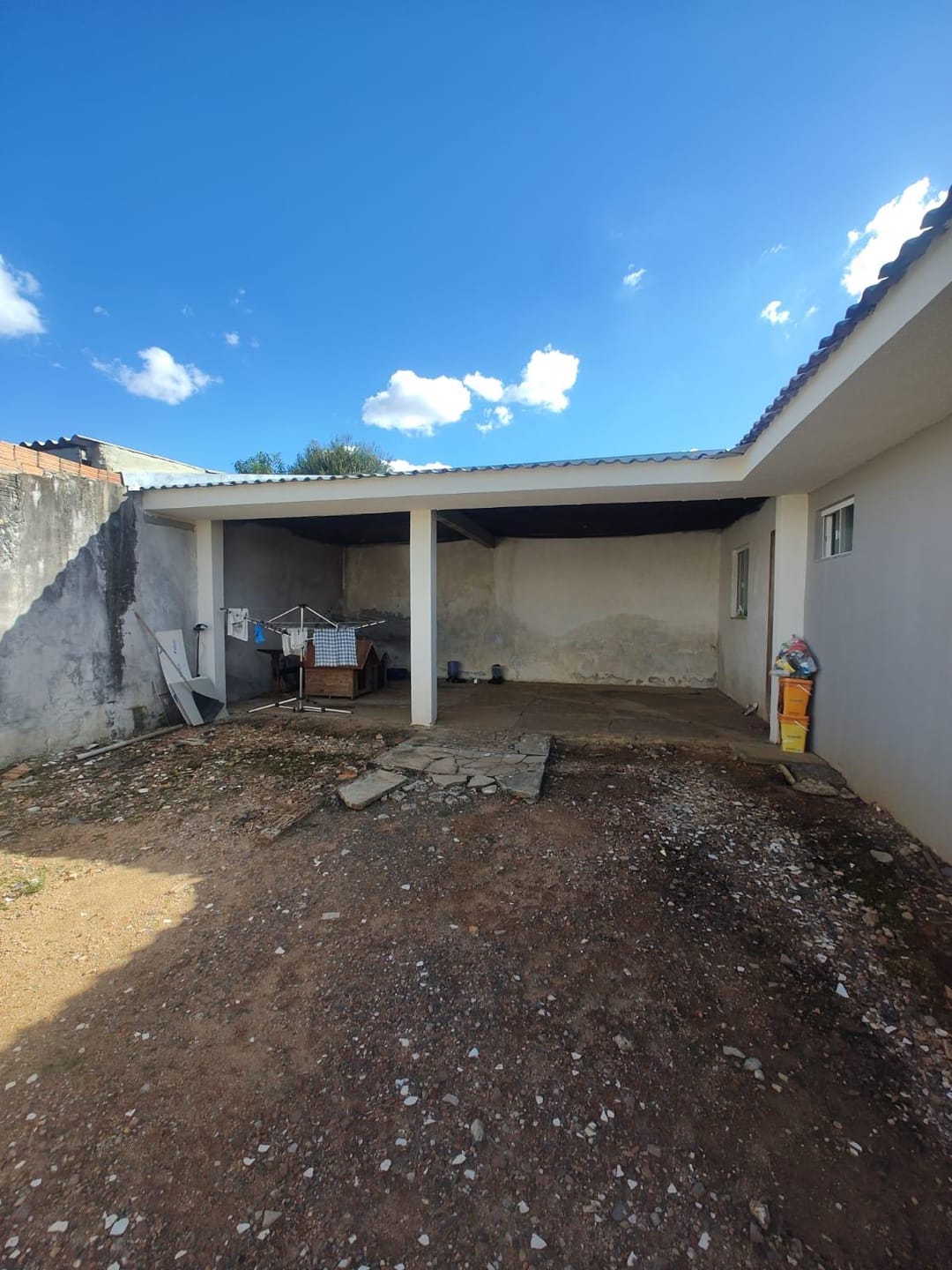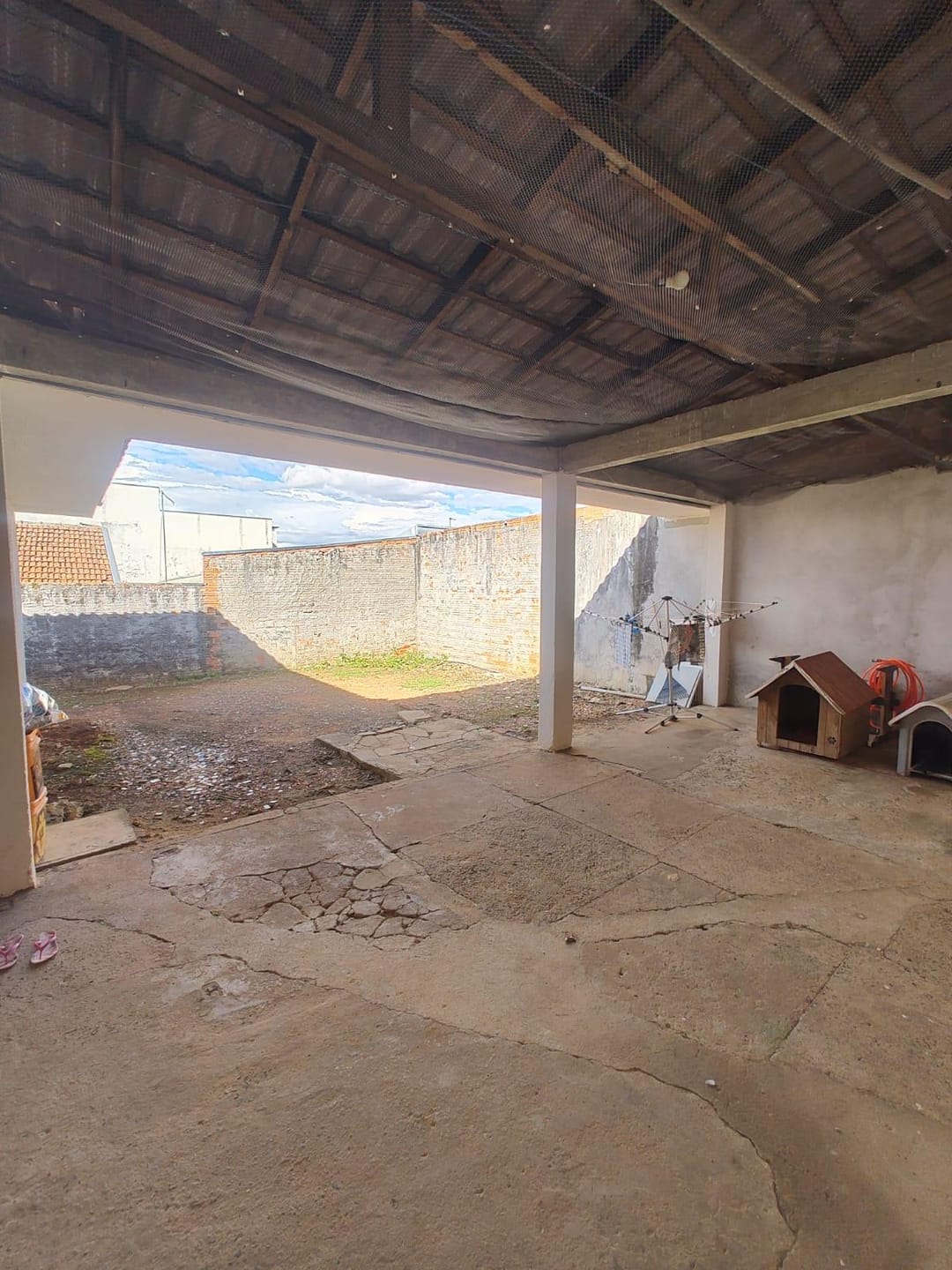 Amplo espaço externo com excelente potencial para criação de uma área de lazer completa, incluindo piscina e espaço gourmet com churrasqueira.