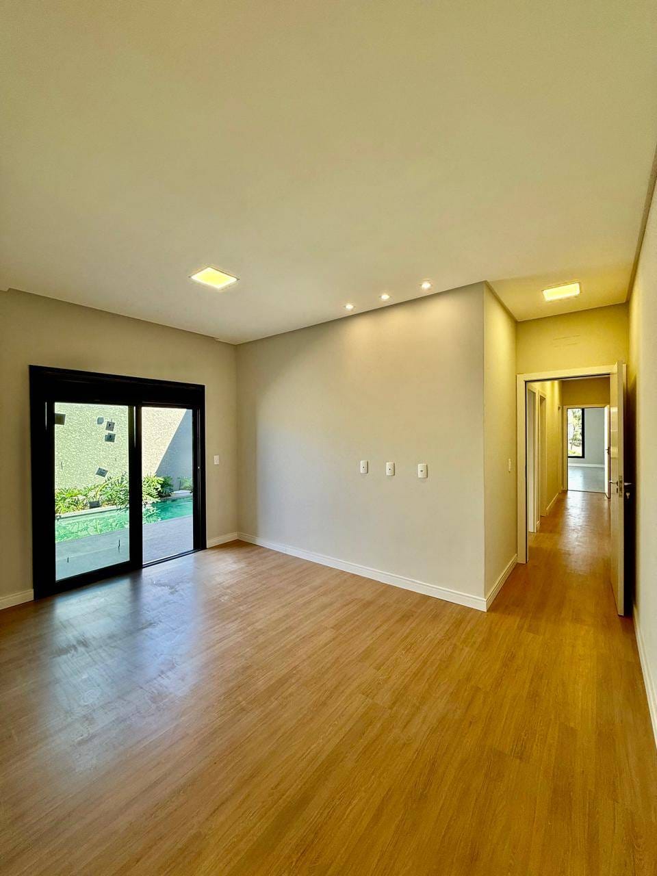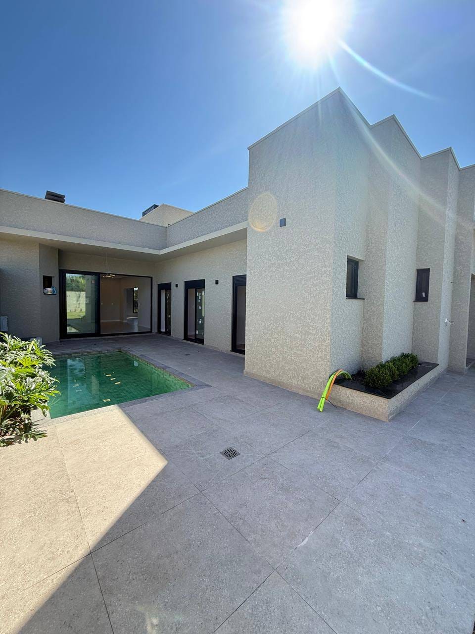 Linda casa térrea em condomínio fechado, contendo 03 quartos (sendo 01 suíte com espaço para closet) e todos com porta para que dá para externa, banheiro social, cozinha integrada a sala de jantar, sala de estar com pé direito alto, área de serviço, piscina, banheiro social, ampla sobra de quintal, duas vagas cobertas e duas descobertas.