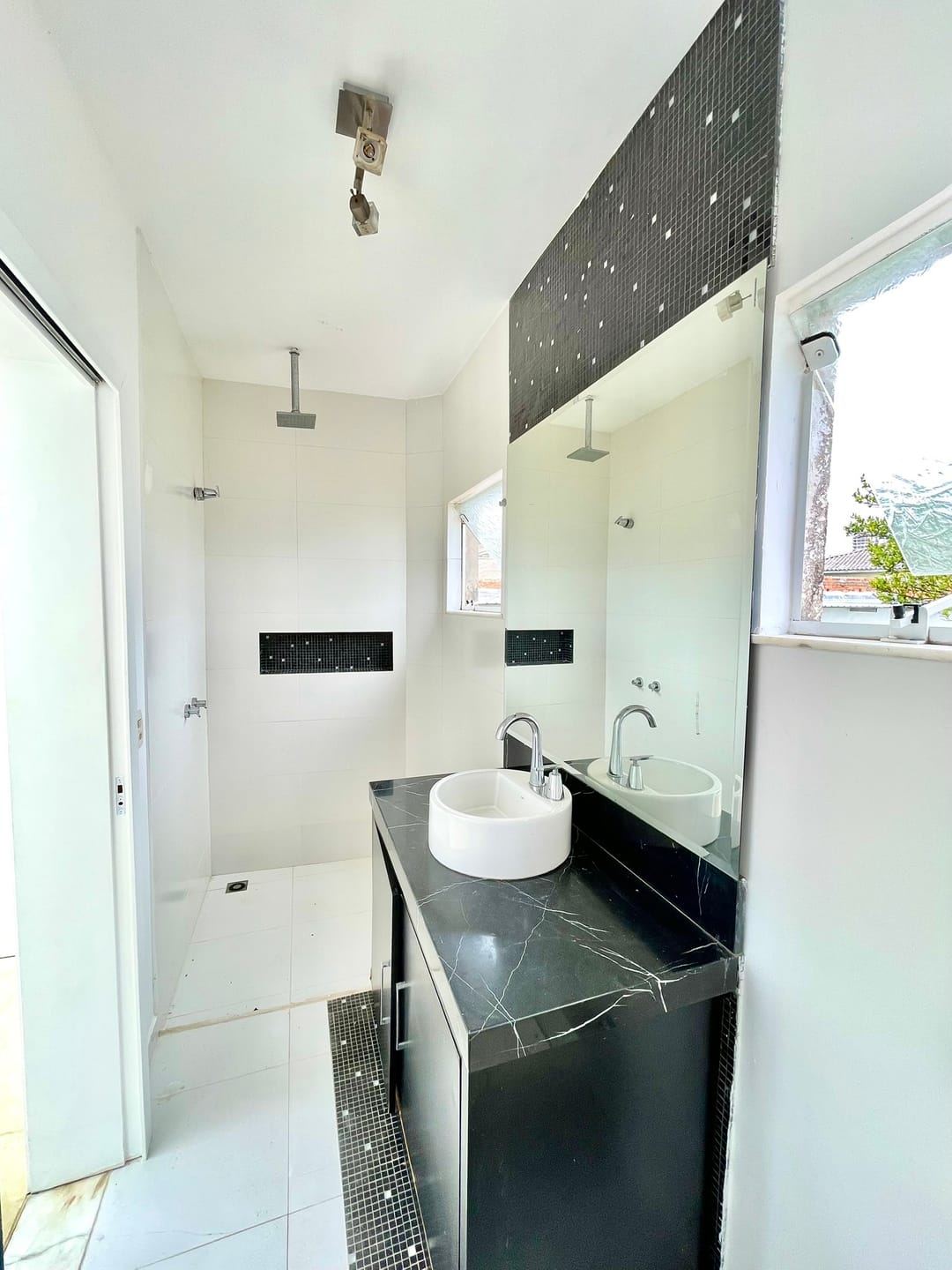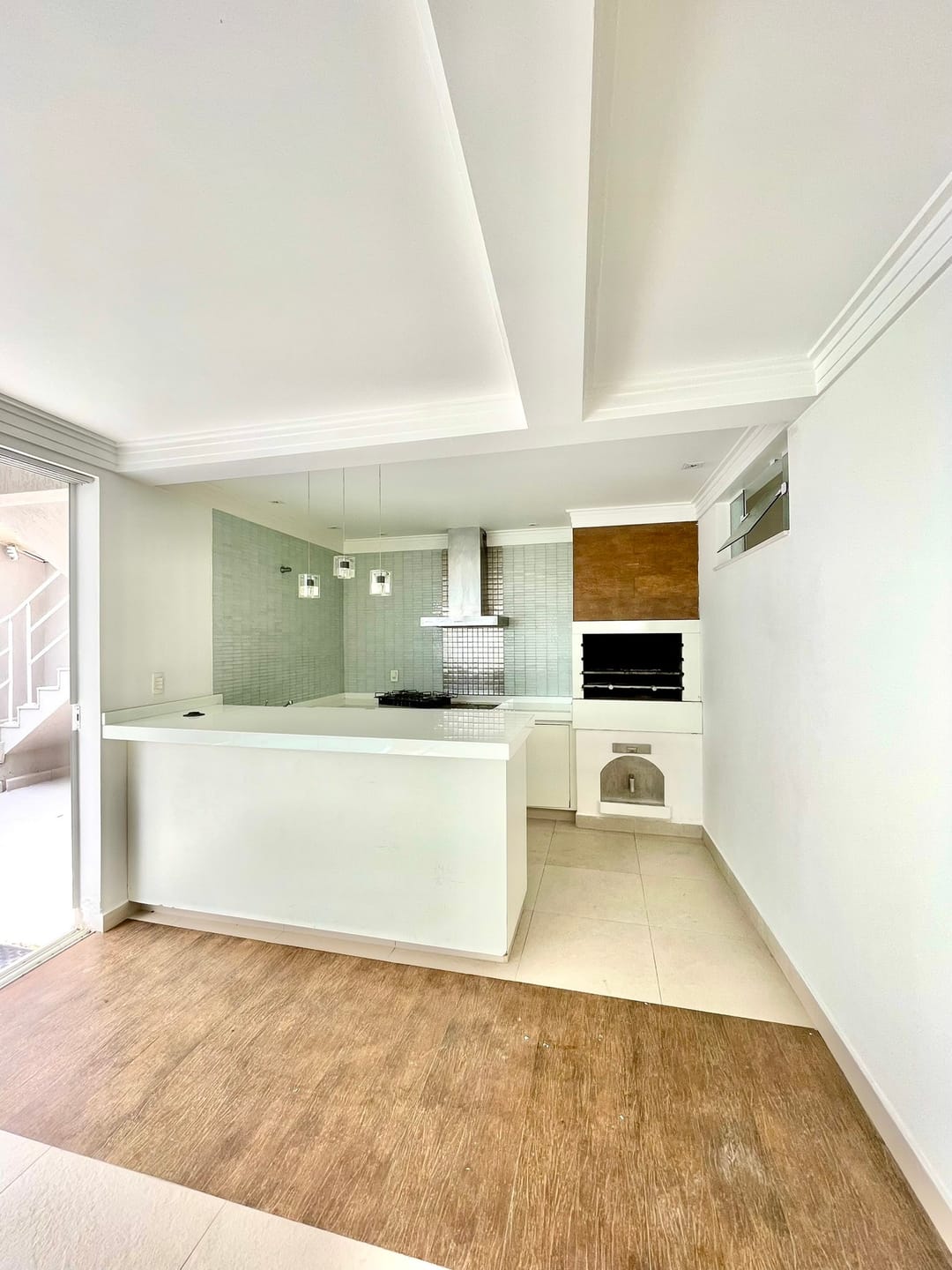 Edicula com uma espaçosa área gourmet e banheiro, mais um espaço home com banheiro.